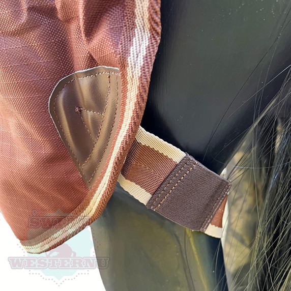 - 1 pas pod brzuchem, 2 paski na zadnie nogi, klapa na ogon