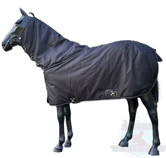 Derka zimowa padokowa 300g 1200D Black to świetna derka z odpinanym kapturem dla Twojego konia.