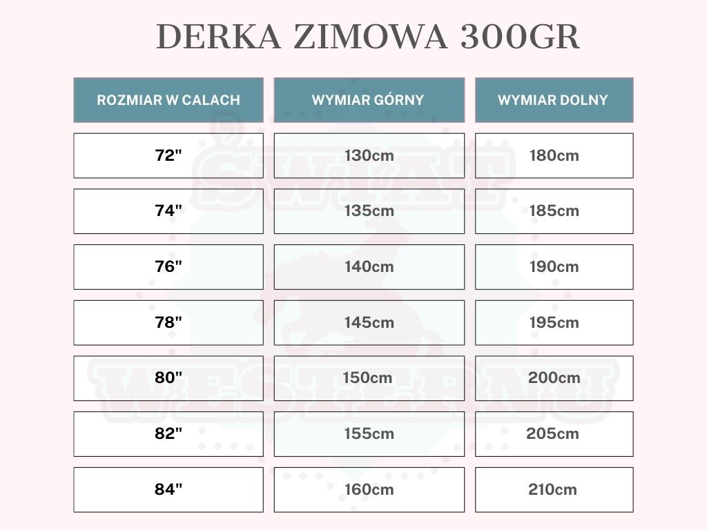Gruba i ciepła derka zimowa o wypełnieniu 300gr/m² idealna na chłodniejsze dni.