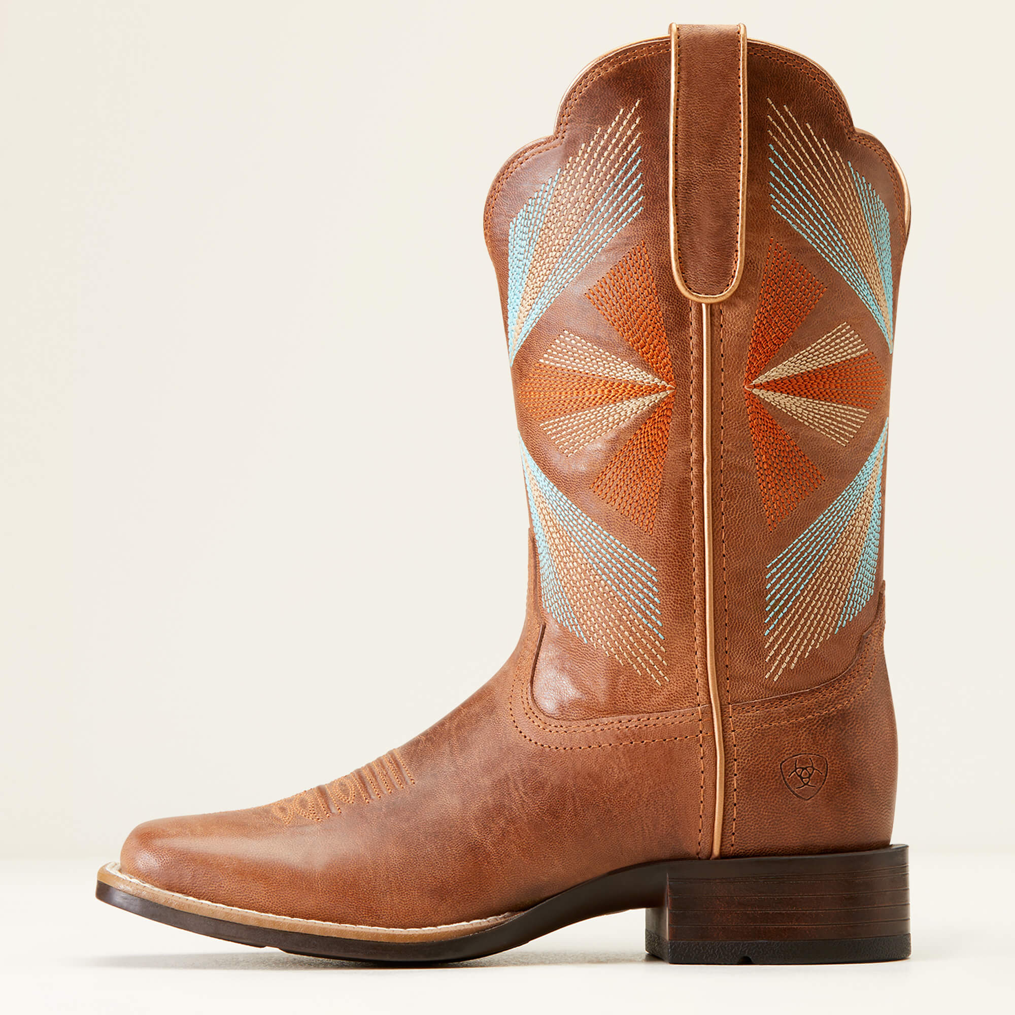 Kowbojki Ariat Oak Grove to jasne hafty i dynamiczny wzór ściegu robią duże wrażenie na arenie i poza nią. Tymczasem nasza ultralekka, wyjątkowo trwała podeszwa zapewnia wygodę przez wiele godzin.