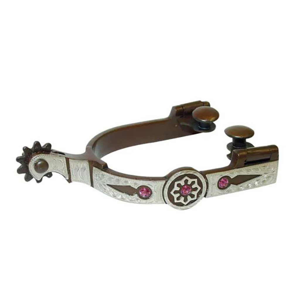 Ostrogi western Comanchero Metalab wykonane z najwyższej jakości szczotkowanej stali oraz zostały ozdobione różowymi kamieniami.