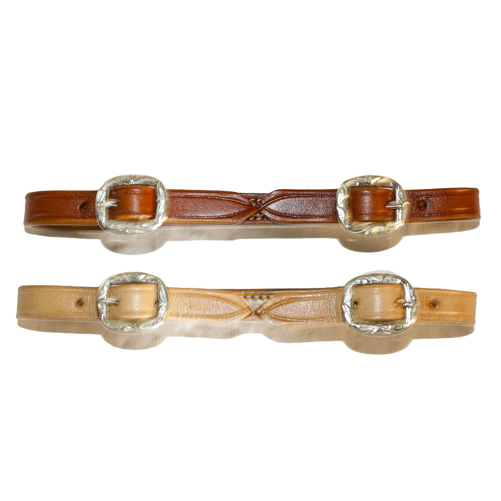 Pasek do wędzidła Show skórzany dostępny w dwóch wersjach kolorystycznych, wyposażony w dwie ozdobne sprzączki.