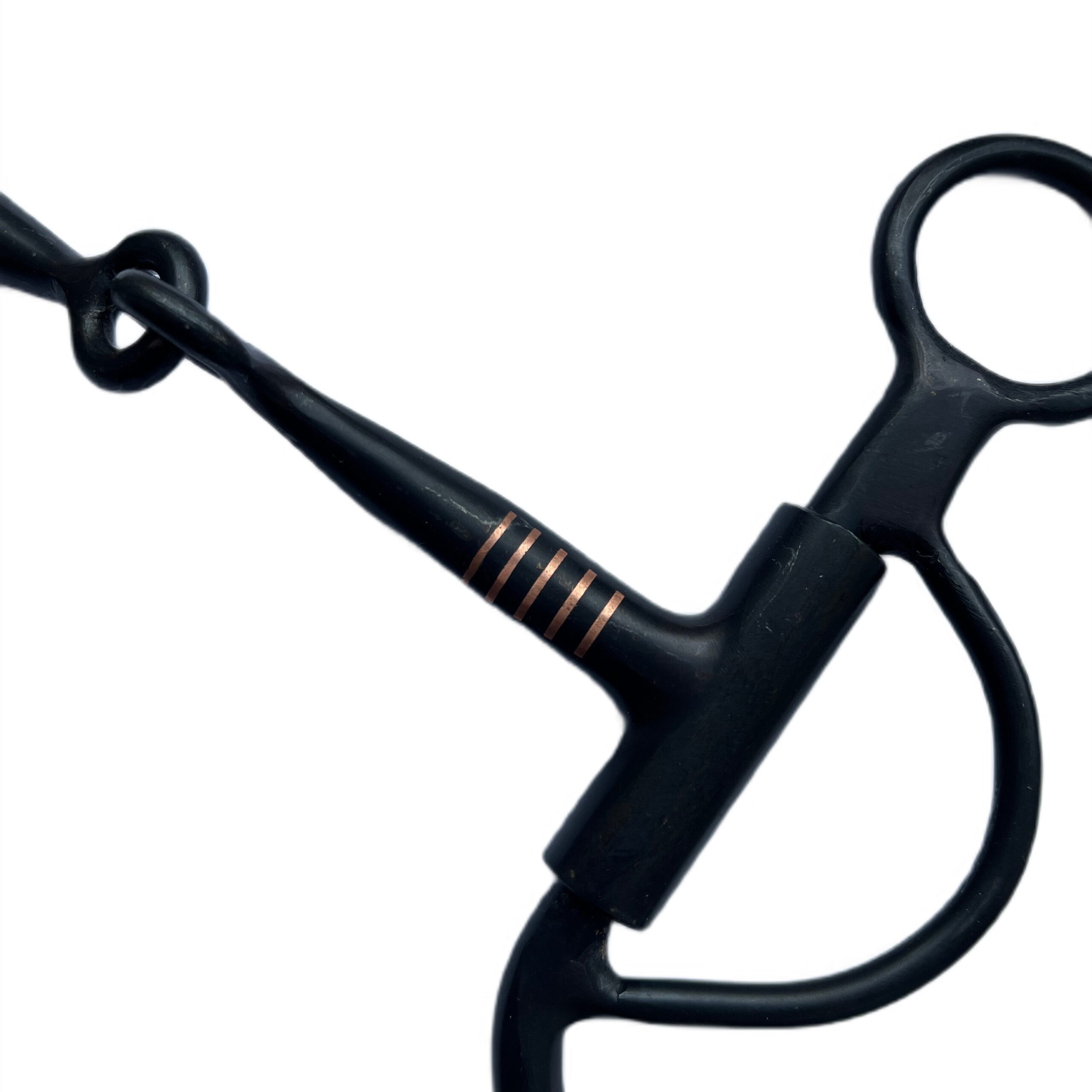 Wędzidło treningowe snaffle bit, posiada miedziane wstawki oraz krótkie czanki.
