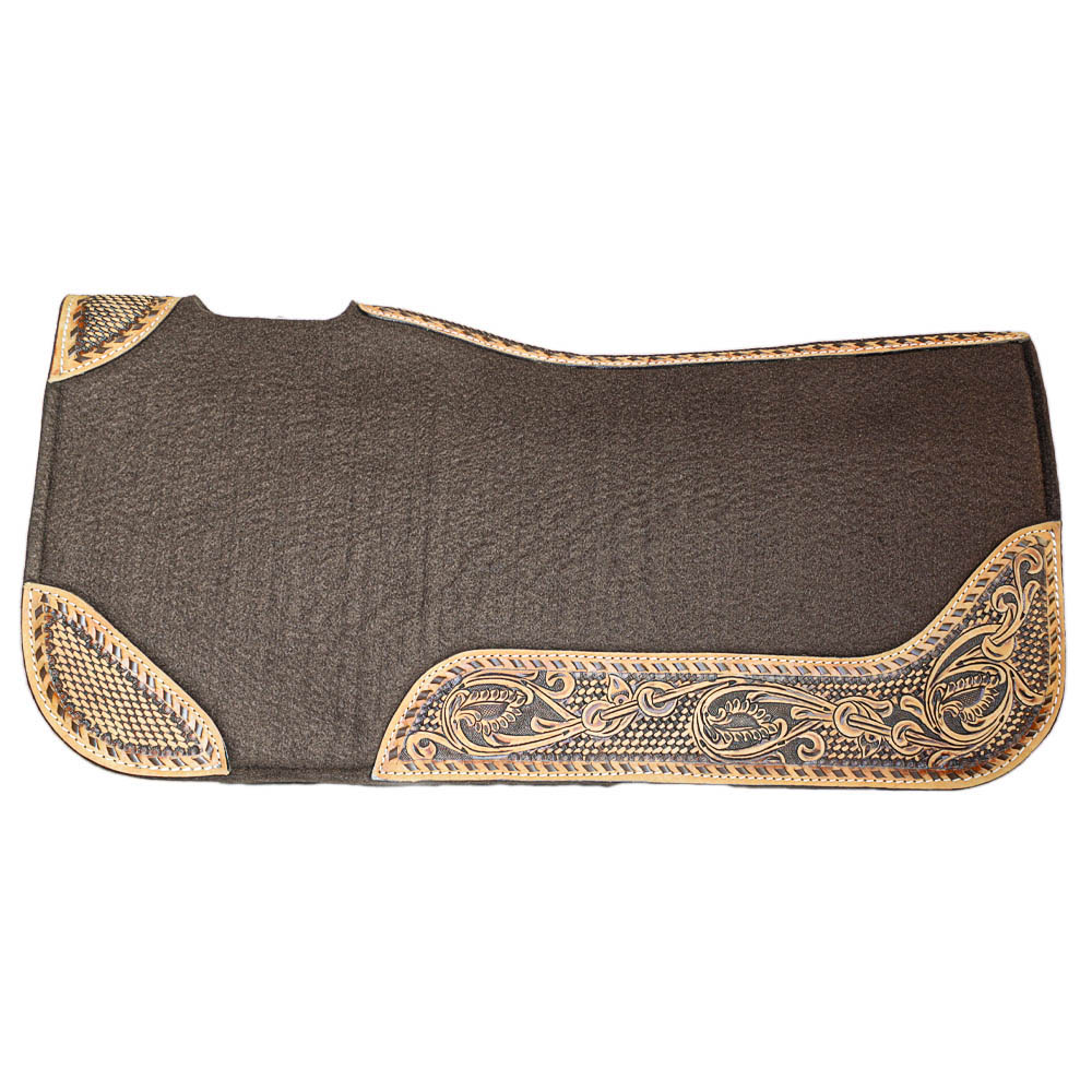 Pad western Buckstitch 70cm został zaprojektowany z otworem odciążającym w okolicach kłębu oraz profilowanym kształtem dla lepszego dopasowania siodła. Filc naturalny o grubości 2 cm zapewnia doskonałe właściwości, odprowadzania wilgoci, a także posiada doskonałą amortyzację podczas jazdy. Pad ma ręcznie zdobione skórzane akcenty, co zwiększa trwałość i żywotność.