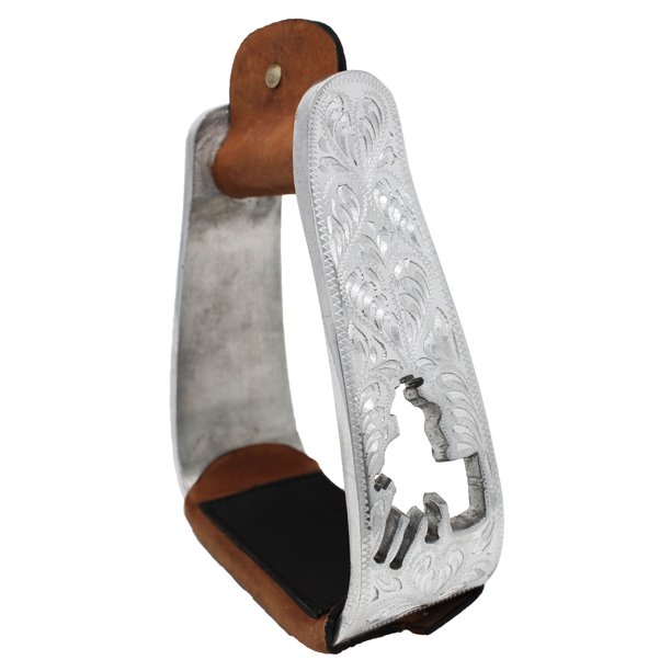 Strzemiona Western Barrel Racing wykonane z aluminium posiadają grawer oraz wycięty motyw Barrel Racing. Obszyte zostały naturalną skórą. Ustawienie strzemion pod kątem zapewnia złagodzenie bólu kolan oraz bioder, którego doświadczają jeźdźcy, dodatkowo strzemiona ułatwiają przyjęcie prawidłowej postawy.